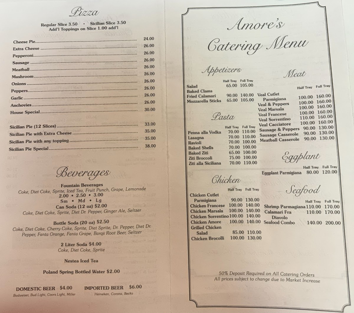 Amore Pizza Menu